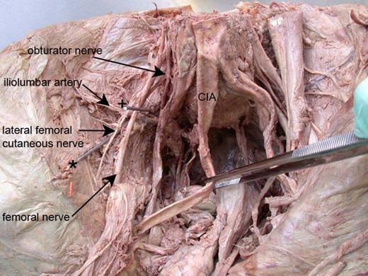 Dissections and CT scan imaging showed that Lateral Approach was less likely to cause injury to significant neurovascular structures and penetrate the sacroiliac joint in comparison to the Medial Approach. Using the Medial Approach, in the event of penetration of inner cortex, we documented injury to the sacro-iliac joint, femoral nerve, common iliac vessels and mesentery of the sigmoid colon. The needle was observed in close proximity to the iliolumbar vein and artery and the lumbosacral trunk. Using the Lateral Approach, the structures adjacent to the needle were limited to the iliacus muscle and the lateral cutaneous branch of femoral nerve. The lateral approach had the added benefit of more consistent orientation since the relationship of the ASIS to the PSIS is both consistent and palpable whereas the location of the umbilicus may vary.