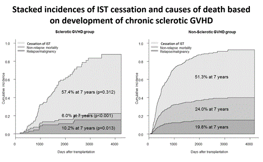 Stacked incidences IST cessation and causes of death based on the development of chronic sclerotic GVHD