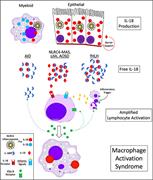 Interleukin-18 (IL-18) distinguishes and drives macrophage activation syndrome, particularly in patients carrying inflammasome-activating NLRC4 mutations. An activating Nlrc4 mutation in mice drives small intestinal epithelial IL-18 secretion and epithelial proliferation (pictured, green nuclei have recently divided, incorporating EdU [5-ethynyl-2'-deoxyuridine]; blue/DAPI [4',6-diamidino-2-phenylindole] stains all nuclei). See the article by Weiss et al on page 1442.