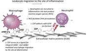 Accumulation of 2-(ω-carboxyethyl)pyrrole (CEP; green), an end product of docosahexaenoic acid oxidation, in inflamed peritoneal tissues is mediated by neutrophils. Macrophages (red) use CEP-modified proteins as ligands for β2 integrin–dependent migration during inflammation. Nuclei are shown in blue. See the article by Yakubenko et al on page 78.