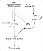 Antiphospholipid antibody syndrome is caused by antiphospholipid antibodies (aPLs) that cause thrombosis and pregnancy loss. In a Plenary Paper, Müller-Calleja et al dissect the complex and multifaceted mechanism by which aPLs induce thrombosis through priming of monocytes and disruption of the balance of tissue factor activation and inhibition.