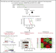 How mutations in DNMT3a and IDH2 collaborate to generate myeloid malignancy has been a conundrum. Now Zhang and colleagues present transcriptomic, methylation, and metabolic profiling of murine myeloid cells with concurrent mutations and identify dependencies that may be amenable to therapeutic manipulation in patients.