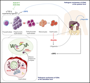 Light microscopy analysis of bone marrow from a patient with congenital dyserythropoietic anemia type IV, showing trinucleated erythroblasts. See the article by Iolascon et al on page 1274.