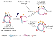 The bone marrow stem cell niche is critical for hematopoietic stem cell development. The authors demonstrate that vascular endothelial growth factor C (VEGF-C) is critical for maintaining the niche: elimination of VEGF-C leads to delayed hematopoietic recovery posttransplant, and exogenous VEGF-C accelerates hematopoietic recovery from irradiation.