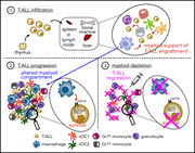 Lyu et al investigated the role of the microenvironment in T-cell ALL (T-ALL), demonstrating that monocyte-macrophages are necessary for supporting the survival and proliferation of T-ALL cells in vitro and in vivo in murine models. In addition, they demonstrated that an enriched macrophage signature in human pediatric T-ALL is associated with inferior outcomes, suggesting that tumor-associated myeloid cells might offer a novel target for T-ALL therapy.