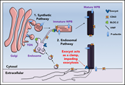 Sharda et al explored the mechanism of von Willebrand factor (VWF) packaging into and release from Weibel-Palade bodies (WPBs) by defining the interaction of biogenesis of lysosome-related organelle-2 (BLOC-2) and the exocyst complex. BLOC-2 and exocyst bind to one another and facilitate formation of WPBs; they have divergent influences on WBP release, with BLOC-2 permissive for, and exocyst preventing, WPB release. This suggests that modulation of exocyst could increase VWF release.