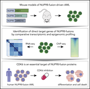 In a Plenary Paper, the authors describe their investigation of targets of nucleoporin 98 (NUP98) fusion oncogenes, the products of recurrent translocations found in poor-prognosis acute myeloid leukemia (AML). Using mouse models and transcriptomic analysis, they found multiple transcriptional targets of NUP98 fusions and identified CDK6 as a potential candidate for targeted therapy for this subset of AML.
