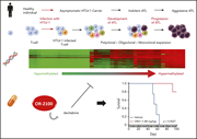 Watanabe and colleagues identify that cumulative methylation of DNA at sites differentially determined by human T-cell leukemia virus 1 infection is correlated with the development and progression of adult T-cell leukemia-lymphoma (ATL). Consistent with this being functionally important, they demonstrate potent activity of hypomethylating agents in patient- and cell line–derived xenografts.