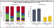 Voorhees et al report results of a randomized trial of daratumumab added to standard frontline therapy with lenalidomide, bortezomib, and dexamethasone (RVd) in transplant-eligible patients with multiple myeloma. They demonstrated improved stringent complete response rates posttransplant that deepened over time.