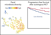 In patients who undergo allogeneic hematopoietic cell transplantation (HCT), loss of fecal microbiota diversity is associated with increased graft-versus-host disease (GVHD) and nonrelapse mortality (NRM). The authors investigated decreased fecal microbiota diversity in patients undergoing autologous HCT who do not develop GVHD and have low NRM. They demonstrate that autologous HCT patients also develop decreased fecal microbiota diversity, which is associated with decreased progression-free survival.
