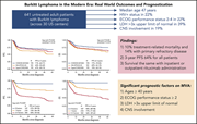 Burkitt lymphoma (BL) is an aggressive disease with excellent survival reported in small prospective series using current chemoimmunotherapy. Evens et al report real-world experience with BL in a study of 641 adult patients from 30 US cancer centers, demonstrating progression-free and overall survival inferior to those reported in clinical trials and identifying risk factors for adverse outcomes.