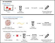 Diagnosis of heparin-induced thrombocytopenia (HIT) can be a challenge. Pathogenic HIT antibodies selectively activate platelet factor 4 (PF4)–treated platelets. In a prospective, blinded study of more than 400 patients suspected of having HIT, Samuelson Bannow and colleagues demonstrate high accuracy of the technically simple PF4-dependent P-selectin expression assay (PEA) relative to the gold standard (serotonin release assay). Widespread use of the PEA could improve diagnosis and change clinical practice.