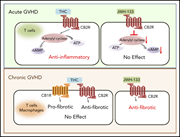 Endocannabinoids are arachidonic acid–containing bioactive lipids that have wide-ranging interactions with G protein–coupled receptors. The authors investigated the role of the type 2 cannabinoid receptor (CB2R) in modulating T-cell activation in the setting of murine graft-versus-host disease (GVHD). Targeting CB2R with tetrahydrocannabinol mitigates acute GVHD, suggesting that targeting this pathway may offer a novel approach to treating GVHD.