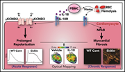 Patients with sickle cell disease (SCD) are predisposed to cardiomyopathy, and previous reports suggest that interleukin-18 (IL-18) may play a role in cardiac dysfunction. In a mouse model of SCD, the authors demonstrate that IL-18 causes ventricular tachycardia and altered cardiac relaxation; conversely, IL-18 inhibition decreases fibrosis and improves diastolic function. They further demonstrate that in patients with SCD, plasma IL-18 levels correlate with myocardial fibrosis and prolonged QTc, suggesting IL-18 as a novel therapeutic target to protect against SCD-related cardiac disease.