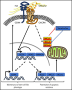 Yu and colleagues report new insights into how interaction between acute myeloid leukemia (AML) cells and the bone marrow niche influences sensitivity of AML to venetoclax. Using primary patient cells and murine and zebrafish models, they found that 2 microenvironmental ligands (CD44 and CXCL12) collaborate to stimulate CXCR4-mediated signaling pathways in AML cells, leading to increased stem cell features, decreased apoptosis, and reduced sensitivity to venetoclax. Targeting this microenvironmental mechanism of resistance may augment venetoclax activity in AML.