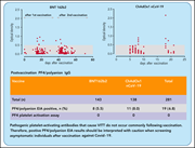 Given the emerging data on VITT and the pathogenic role played by anti-PF4 antibodies, a critical question becomes, How frequently can anti-PF4 antibodies be detected and how frequently are they pathogenic? Thiele et al studied 281 healthy vaccinees and report positive enzyme immunoassay (EIA) tests for anti-PF4 antibodies in a low percentage (6.8%), with similar frequencies for adenoviral ChAdOx1 nCoV-19 vaccine recipients and those who received the mRNA-based BNT162b2 vaccine. They conclude that low-titer EIA positives are common while pathogenic platelet-activating antibodies are rare, cautioning against overinterpretation in the absence of clinical indicators.
