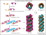 The release of von Willebrand factor (VWF) into the blood controls platelet adhesion and aggregation. Zeng and colleagues used cryo-electron microscopy to reveal how VWF tubule formation is initiated by a pH-sensing homodimer of the propeptide in a multistep process. From this procedure, they showed how clinical Type 2A von Willebrand disease mutations disrupt this process, leading to diminished VWF multimers in plasma, and how these defects could potentially be rectified.