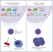 Up to 30% of patients with trisomy 21 develop transient abnormal myelopoiesis (TAM), and many progress to acute megakaryoblastic leukemia (AMKL), both in association with mutations in the GATA-1 transcription factor. In a Plenary Paper, Alejo-Valle et al demonstrate that miR-125b on chromosome 21 synergizes with mutant GATA-1 to promote leukemogenesis through the repression of ARID3A. Restoring ARID3A expression restores megakaryocytic differentiation and blocks the expansion of GATA-1mutant stem cells.