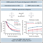 In this month’s CME article, Robin and colleagues report on the role of allogeneic stem cell transplant in patients with chronic myelomonocytic leukemia (CMML) using 2 major international registry data sets with 1114 patients and statistical modeling that accounts for the risk of transformation to acute myeloid leukemia (AML). They found that allografting before transformation decreases life expectancy in patients with lower risk CMML but improves 5-year overall survival in patients with higher risk disease. These data aid decision-making around the timing of allografting for fit, younger patients with CMML.