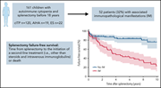 Pincez et al examined splenectomy outcomes in 161 pediatric patients with autoimmune cytopenia. Failure-free survival is markedly decreased in patients with associated immunopathologic disease, with a hazard ratio (HR) of 0.39 in those with a diagnosed systemic autoimmune disease before splenectomy, and an HR of 0.21 in those with a diagnosis subsequent to splenectomy.