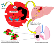 Acute chest syndrome is a major cause of morbidity and mortality in sickle cell disease (SCD) and often occurs in the setting of a vasoocclusive crisis. Sundd et al demonstrated by intravital microscopy in murine SCD mice that inflammation promotes activation of neutrophil gasdermin D, which promotes shedding of neutrophil extracellular traps. Surprisingly, these form not in the lung but rather in the liver, from which they travel to the lung, inducing sterile inflammation.