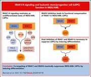 Abnormal innate immune signaling in myelodysplastic syndromes and acute myeloid leukemia (MDS/AML) suggests a novel pathway for targeted therapy. The kinase IRAK4 has been implicated in immune dysregulation in MDS/AML but, despite encouraging early clinical trials, therapy with an IRAK 4 inhibitor appears insufficient as monotherapy. Bennett et al report that IRAK4 inhibition induces compensatory IRAK1 upregulation, limiting therapeutic efficacy; however, simultaneous targeting of both IRAK1 and IRAK4 results in greater suppression of leukemic stem cells in in vitro studies and in mouse xenografts.