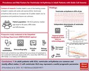 Sudden death is a leading cause of death in patients with sickle cell disease (SCD), but its cause is unknown. In this Plenary Paper, d’Humières et al report on the prevalence and predictors of ventricular arrhythmia (VA) in 100 patients with SCD referred for ambulatory cardiac evaluation. The prevalence of VA was 22% and was associated with male sex, impaired global longitudinal strain, and decreased platelets. Although based on a small cohort of patients specifically referred for cardiac evaluation, these data suggest VA contributes to sudden death in SCD and requires further study.