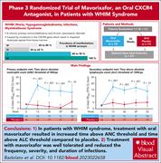 Warts, hypogammaglobulinemia, infections, and myelokathexis (WHIM) syndrome is a rare, autosomal-dominant immunodeficiency usually caused by gain-of-function variants in the CXCR4 gene that leads to impaired neutrophil and lymphocyte trafficking. Plerixafor, an injectable CXCR4 inhibitor, improves cytopenias and infections in patients with WHIM syndrome. Badolato et al present a phase 3 trial of mavorixafor, an oral CXCR4 inhibitor, in 31 patients, reporting increases in peripheral counts and decreased frequency, severity, and duration of infections.