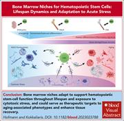 Hematopoietic stem cells (HSCs) are responsible for the production of mature blood lineages through life in steady state and in response to external stress. HSCs depend on interactions with microenvironmental niches to perform these critical roles. Hofmann and Kokkaliaris present a state-of-the-art review of how the bone marrow niche supports hematopoietic function with aging and with exposure to stress and discuss strategies for using niche-derived signals to revert aging phenotypes and improve marrow recovery after myeloablation.