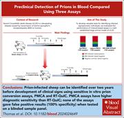 As yet, there is no practical and robust blood diagnostic test for variant Creutzfeldt-Jakob disease (vCJD), a prion disease that can be transmitted by blood transfusion. Thomas et al report a comparative analysis of 3 highly specific blood assays to detect disease-associated prion protein in blood of sheep infected with bovine spongiform encephalopathy as a model of human vCJD. Their research will accelerate the development of a much-needed human vCJD blood assay.
