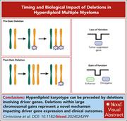 Cirrincione et al performed whole-genome sequencing on 1173 samples from patients with multiple myeloma (MM). Integrating molecular events over time, the authors made the unexpected observation that in patients with a hyperdiploid karyotype, deletions were found that preceded hyperdiploidy in some patients, suggesting that preceding deletions, which are enriched for tumor suppressor genes, are the earliest drivers of MM development.