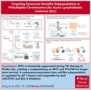 Philadelphia chromosome–like B-cell acute lymphoblastic leukemia (Ph-like ALL) is associated with chemotherapy resistance and high relapse rates. In this article, Ding and colleagues describe mechanisms of therapeutic escape in patient-derived xenografts of Ph-like ALL. The authors show a specific MYC dependency in Ph-like ALL cells, defining a population of cells with senescence-associated stem cell–like features that can be successfully targeted by dual inhibition of JAK/STAT and BCL2 with ruxolitinib and venetoclax.