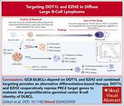 Germinal center B cells depend on the epigenetic enzymes disruptor of telomeric silencing 1-like (DOT1L) and enhancer of zeste homolog 2 (EZH2) for development and immune responses. Using cell lines and in vivo murine models, Göbel et al showed that germinal center–type diffuse large B-cell lymphoma (DLBCL) depends on EZH2, whose gain-of-function mutations occur in DLBCL, and DOT1L to enable sustained proliferation. Treatment with the combination of DOT1L and EZH2 inhibitors demonstrates synergistic antilymphoma activity and may offer opportunities for future clinical studies.