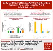 Fitusiran, a subcutaneous investigational small interfering RNA antithrombin (AT)–lowering therapeutic, increases thrombin generation to restore hemostasis in people with hemophilia A or B, irrespective of inhibitor status. Thrombotic complications were seen in previous trials. Young et al report on a phase 3 open-label extension study and show that when using a different AT-based dose regimen, fitusiran was well tolerated and maintained clinically meaningful protection against bleeding in people with hemophilia A and B, with as few as 6 injections per year; thrombotic event rates were similar to those seen in the general hemophilia population. Longer follow-up is ongoing to confirm the durability of this favorable safety profile.