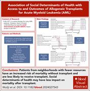 Allogeneic hematopoietic cell transplantation (allo-HCT) remains the standard of care for many patients with acute myeloid leukemia (AML). In this month’s CME article, Wuliji et al examined whether access to allo-HCT is equitable across different social determinants of health and found that patients from lower-resourced areas are less likely to undergo allo-HCT and have higher overall mortality. Notably, even among those who do receive allo-HCT, individuals from socioeconomically disadvantaged regions experience worse outcomes. These findings underscore the need for targeted interventions to ensure equitable access to allo-HCT and improve outcomes for underserved AML patient populations.