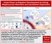 In thrombopoiesis, a choreographed cytoskeletal program governs megakaryocyte maturation, polarization, and proplatelet formation. Kollotzek et al identify casein kinase 1α (CK1α) as a key regulator of these processes in both murine and human systems, uncovering its role as an important signaling molecule in megakaryocyte cytoskeletal dynamics and polarization, proplatelet formation, and polyploidization. This study expands our understanding of thrombopoiesis by identifying CK1α as a crucial gatekeeper that regulates cytoskeletal dynamics in megakaryocytes and may justify a reexamination of CK1α-targeted therapies.