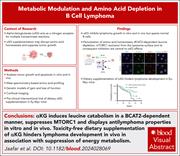 The role of altered metabolism in hematological malignancies is increasingly recognized beyond specific examples such as isocitrate dehydrogenase–mutant acute myeloid leukemia. Using human diffuse large B-cell lymphoma (DLBCL) cell lines, patient samples, and Myc-driven murine B cells, Jaafar et al found that supplementation of α-ketoglutarate (α-KG) to lymphoma cells increases cell death, regardless of cell of origin or genetic characteristics. α-KG supplementation rewires branched-chain amino acid metabolism to deplete amino acids, thereby inactivating mTORC1 via perturbed lysosomal localization and suppressing lymphoma growth. These data provide clues for future clinical investigation.