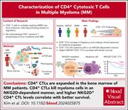 Other than well-defined intrinsic genetic changes in myeloma cells, why do some patients with multiple myeloma do well in the long term? Kim et al identified that higher CD4+/CD8+ T-cell ratios associate with better outcomes and analyzed the CD4+ T-cell compartment in the bone marrow using single-cell RNA sequencing coupled with single-cell T-cell receptor sequencing. The authors revealed the presence of a subset of helper CD4+ T cells with the capacity to recognize and kill autologous myeloma cells and showed how cytotoxicity can be downregulated by blockade of the cell surface receptor NKG2D, providing at least a partial explanation for the original clinical observation.