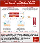 In addition to vaccine-induced thrombotic thrombocytopenia (VITT), adenovirus vector-based COVID vaccines have been associated with increased risk of thrombotic events, including cerebral venous thrombosis, ischemic stroke, and myocardial infarction. In a microfluidic study mimicking arterial flow, Chen et al identified a novel shear-dependent platelet aggregation mechanism induced by the binding of platelet integrin αIIbβ3 to the arginine-glycine-aspartate sequence of the viral capsid, distinct from VITT. These results help explain the excess thrombotic events without thrombocytopenia.