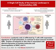 There are limited data on the mechanisms underlying skin infiltration in extramedullary acute myeloid leukemia (AML). Penter et al used bulk and single-cell transcriptomic profiling to delineate pathways associated with skin tropism and the unique microenvironment of leukemia cutis. They identified T cells exhibiting exhaustion signatures that are distinct from those seen in bone marrow–involved AML, as well as altered expression of homing molecules and downregulation of major histocompatibility class II. Their analysis suggests that extramedullary AML arises from a complex interplay between leukemia-intrinsic features and local immune effector cell dysfunction, suggesting potential therapeutic strategies.