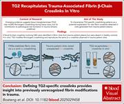 Tissue transglutaminase (TG2) may modify fibrin(ogen) cross-linking during tissue injury, but its contribution to pathological clot formation in trauma remains unclear. Boateng et al identified novel β-chain cross-links involving Q82 in fibrin clots from trauma patient plasma that are absent in normal controls. In vitro, TG2 modifies fibrin(ogen) cross-linking and reproduces the same β-α cross-links observed in clots from patients with trauma. Defining these TG2-specific cross-links provides insight into previously unrecognized fibrin modifications in the setting of trauma.