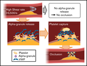 Nbeal2−/− mouse carotid artery showing an absence of thrombi after localized stenosis injury where a normal mouse has an occluding thrombus. Nbeal2−/− mice have defective α-granules that do not release platelet von Willebrand factor (VWF) but have normal plasma VWF levels, showing the requirement of platelet VWF for an arterial occlusive thrombus under high shear. See the article by Kim et al. - PDF Icon Front MatterFront Matter