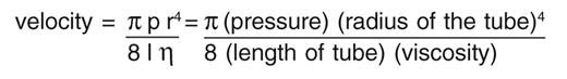 The viscosity of blood is a key concept in management of transfusion in sickle cell disease. Viscosity limits the flow of blood, providing the intrinsic resistance to blood flow in the presence of pressure. The classic Poiseuille equation for laminar flow of a fluid through a straight tube is: